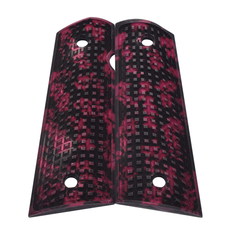 These full-size 1911 Alumagrips feature a bold FRAG texture that delivers excellent traction without being overly abrasive. Machined from aluminum, they offer a lightweight, rigid grip option ideal for hard use, range time, or duty setups. The striking red and black pattern adds a modern, high-performance look while maintaining a precise, secure feel in the hand.